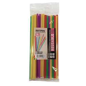 Πλαστικά καλαμάκια πολλαπλών χρήσεων (reusable). Με σκληρό πλαστικό που επιτρέπει την επαναχρησιμοποίησή τους