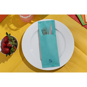 Νέο σχέδιο όπου αναδεικνύεται το μαχαιροπίρουνο. Οι θήκες Venetian παράγονται από 100% ανακυκλωμένο λείο χαρτί 90 gr/m2 με glitter. 100% ECO εμφάνιση της εικόνας του εστιατορίου και υψηλή παροχή υπηρεσίας στους πελάτες. Υγειονομική προστασία των μαχαιροπήρουνων από την έκθεση στο περιβάλλον. Μέγιστη οικονομία χρήσης με την 2φυλλη χαρτοπετσέτα πολυτελείας 30 x 34 cm. Τα μελάνια που χρησιμοποιούνται είναι νερού γεγονός που τα καθιστά αβλαβή και απολύτως ασφαλή για κάθε χρήση στην εστίαση.